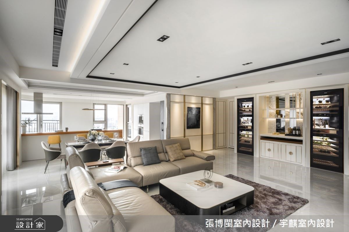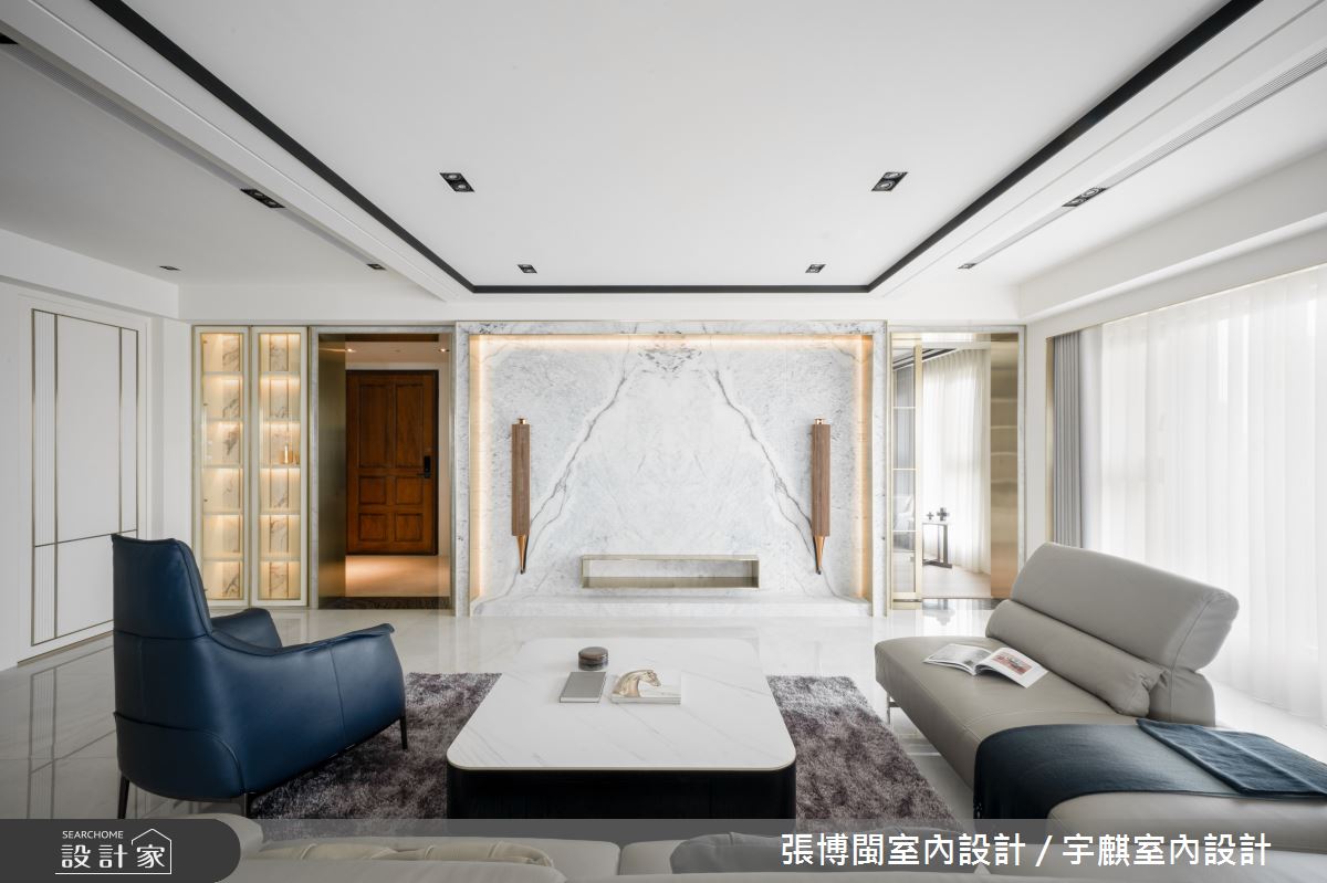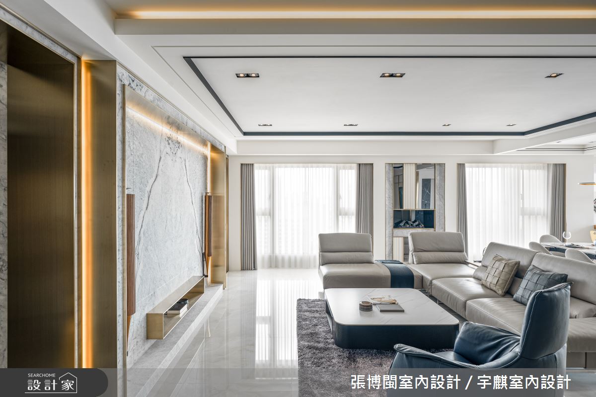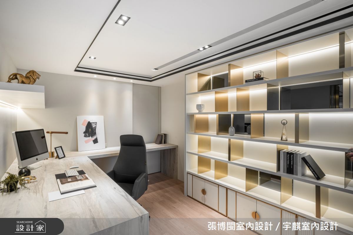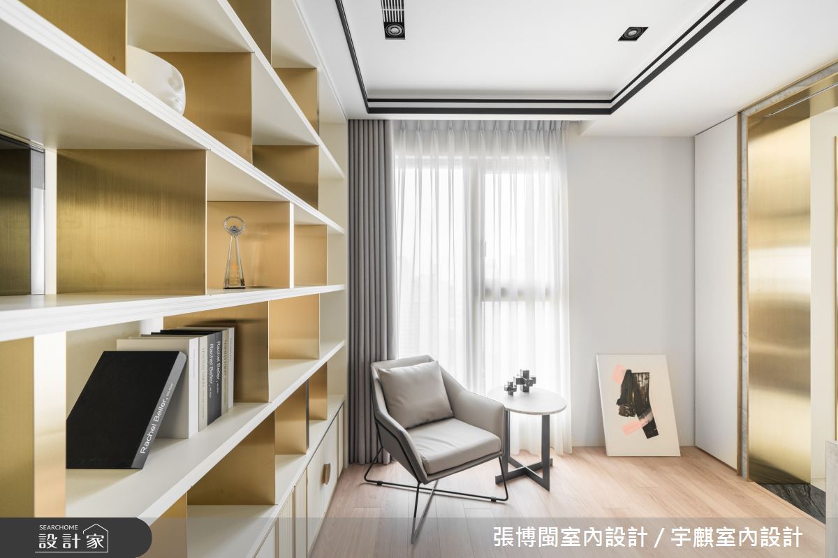 小編帶你看好宅 46坪居家,業主為一對年輕的夫妻,設計師將原有格局重新配置,風格上呈現現代輕奢華底蘊,並透過白、金為主色帶出時髦感,同時善用零碎空間,再額外規劃進一間儲藏室,充分利用住宅每一吋坪效,快跟著小編一起來看看吧! 空間善用條件優勢,將全室隔間重新配置,讓每個空間都可享有良好自由的採光,在白天時幾乎可不用開燈,材料上,則利用金屬鍍鈦、白色石材展現大器中的低奢感,再援引框線造型來強調立體感;針對男主人最重視的公共區域,特別規劃了一台水霧電壁爐,搭入鏡面與石材,兼具與裝飾性與機能性;而帶有時髦氣質的書房,極具巧思地使用金屬鍍鈦作為書櫃隔板,讓細微之處都帶有不言說的設計感!